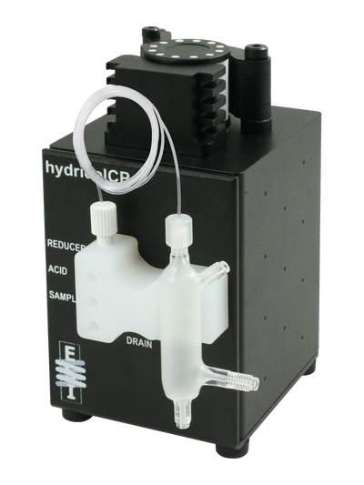 El Sistema hydrideICPde Elemental Scientific, es un sistema de generación de hidruros con microbomba peristáltica de precisión integrada, que mejora los límites de detección de ICP para elementos que forman hidruros como As, Se y Sb. Los niveles inferiores a ppb de dichos elementos a menudo son difíciles de detectar con el ICP, pero el sistema hydrideICP convierte los elementos que forman hidruro en gas, lo que aumenta la intensidad de la señal. En un separador de gas-líquido (GLS) de cuarzo de bajo volumen, los hidruros se separan de los desechos líquidos y luego se transportan al inyector ICP. El sistema hydrideICP puede aumentar la sensibilidad en un orden de magnitud o más en comparación con un sistema solo de nebulizador.