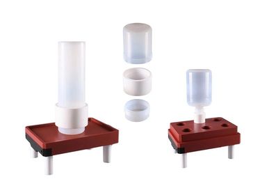 Este ingenioso dispositivo permite el lavado individual de recipientes de varias formas y tamaños. Los contenedores a limpiar se instalan como condensadores para vapor muy puro procedente de la evaporación de ácido de calidad estándar. Se puede utilizar con el FluorPlate, FluoroBloc o EvapoClean. Eficiente, económico y reproducible.